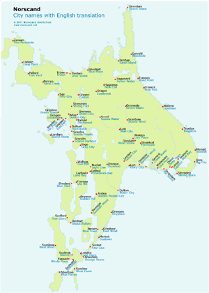 This dictionary gives a small list of frequently used Norscandian words on the maps.