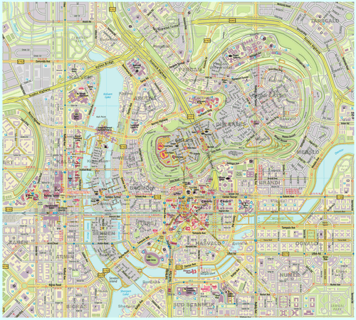Several figures about map – number of unrepeatable map objects is about 9100, including 3170 for buildings, 2500 for roads and walkways, 1240 for labels, 425 for public transit stops, 330 for sports venues. The length of depicted driveways is 970 km.