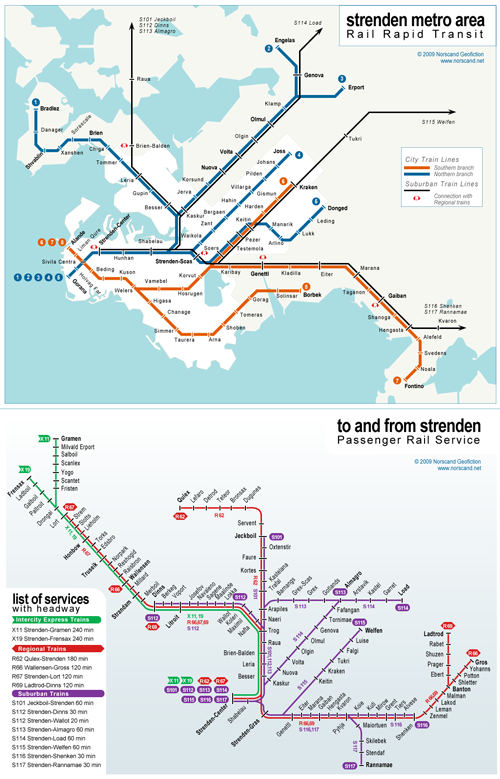 Strenden Metro Area Rail Rapid Transit Map (1024x1595 pix, 0.30 Mb) |